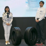 ショー会場ではモータージャーナリストの竹岡圭氏がトークショーを展開、その場で流れた映像では、このナノエナジーM151 EVを装着したトラックを試乗。インプレッションを紹介してくれた。