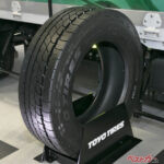 トーヨータイヤでは小型BEVトラック専用として、6月より販売開始するリブタイヤのナノエナジーM151 EV。そして秋に発売予定のスタッドレスタイヤ、ナノエナジーM951 EVを展示した。