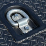 取り付けブラケットの採用により、積載車両のトレッドに合わせたより細かな固定位置調整が可能になった。また、ベルトの着脱もベルト側の金具をブラケットに挿入して90°回転させるだけの簡単操作に。ステンレス製ブラケットは無塗装で暗所でも目立ち、作業が捗る。