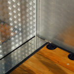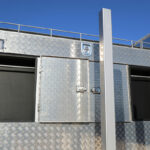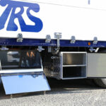 シャシー下回りの収納はドライバーのこだわりを反映。リアオーバーハング部の貫通式リンギ入れはアルミ縞板製の本体にステンレス製の蓋を取り付けたもので、ドライバーが使いやすいサイズでワンオフしたという。