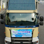 トヨタ輸送(愛知県豊田市)とSY(岐阜県羽島市)はこのほど、環境性能向上を目的に次世代型太陽電池「カルコパイライト太陽電池」を搭載した導風板を装着した車両運搬車の実証導入を開始した。導風板とは、走行時の空気抵抗を低減するためキャブ上部に搭載するエアロパーツのことである。