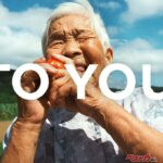 野菜の移動販売車から買ったトマトを抱え喜んでいるおばあちゃん