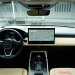 コクピットは、大型ヘッドアップディスプレイ、10.25インチのフル液晶メーター、センターの15.6インチまたは12.9インチのタッチアップディスプレイの構成。エアコンや各種操作のスイッチは、ディスプレイ上で行うが、いざというときには使う、ハザードやウインドウが曇った時に使うデフロスターはモニター下に物理スイッチが設置されている。