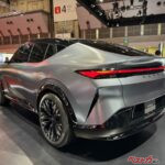 実車を見ると、塊感のあるフォルムに圧倒される。レクサスRZやアリアなどがライバルとなるが、これだけの押し出し感があれば、勝負できるのではと感じた。