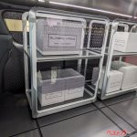 「現時点ではどのバッテリーをどれだけ積むか、というのは研究段階にありますが、このバッテリーをフロア下に二列まで積むことができます。この”二列まで”というのがポイントです。ご存じのように、普通免許で運転できる商用バンの車両総重量(車重+最大積載量)は地域によって異なりますが(日本だと3500kg未満)、このグローバルハイエースBEVコンセプトは、”多少価格が上がってもバッテリーをたくさん積んで航続距離を伸ばしたい”というお客様にはバッテリーをフルで二列積み、”価格は抑えて、そのうえ荷室を広くしたい”というお客様にはバッテリーを一列のみ搭載してフロアが低い仕様をご用意できます」