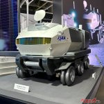 月面探査車や探査車に使用されている特別なタイヤ、人工衛星や自動走行試験車など、宇宙探査で活躍するモビリティを間近に見ることができる。