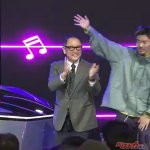 豊田会長以上にモータースポーツ好きになるのは至難の業だと思うが、それはそれとして、会長、この日、今度はビジネススーツに着替えてトヨタブースのイベントステージへもサプライズ登場。