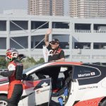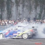 お客さんへアピールしたあと、屋外会場へ移って(ドライビングスーツへ着替えて)「ラリージャパン デモンストレーション走行」に参加。そういえばラリージャパン、今月(2023年11月16(木)〜19日(日))に愛知県と岐阜県で開催します。