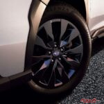 レガシィアウトバック30th Anniversaryは上級グレードの「Limited EX」をベースに、ブラック塗装が施されたフロントグリル、フロントバンパー&バンパーガード、ルーフレール、ドアミラーなどを装着。マットブラック塗装が施された18インチアルミホイールが精悍な印象で、専用のリアオーナメントの装着も特別感を演出する。