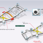 そのほか、リアプロペラシャフトの長さおよび直径を拡大、放熱効果の高いフロントブレーキのベンチレーテッド化、フロントサスペンションはコイルのばね定数を調整し、ショックアブソーバの減衰力特性の最適化&スタビライザー径の拡大、ATの高強度化などの改良が加えられている。