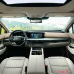 空調類のスイッチはアリアとおなじ静電容量式タッチパネル、近ごろ必須のアンビエント照明は64色に可変できる。インフォテインメント系はAndroid Automotive OSを内蔵しているから、グーグルマップなどがスマホなしでも利用できる。プロパイロットはバージョン1.1が標準だ。