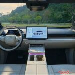 その概要だが、全長4600mm、全幅1850~75mm、全高1645~1660mm、ホイールベース2765mmという大空間型電動SUV。サイズ的にはRAV4が近いが、ボディ後端までまっすぐに伸びるルーフラインを見ただけで、車内の広大さが想像できる。実際その広さは圧倒的で、ロングドライブはもちろん、大人2人が快適に車中泊できるほどのゆとりがある。