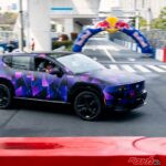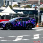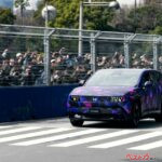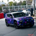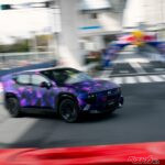 2台とも公の場で走行するのは初走行。パープルのカモフラージュ柄に彩られたホンダ0 SUVにはレッドブル・レーシングの2名が乗車。4年連続王者のマックス・フェルスタッペンと、3月27日に電撃移籍が決まった角田裕毅である。ステアリングはフェルスタッペンが握り、角田は助手席に乗車していた。