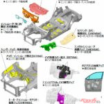 新型フォレスターに新たに搭載されたストロングハイブリッドは、トヨタTHSIIをスバルの水平対向4気筒2.5Lを組み合わせ、独自にチューニングした、シリーズパラレル方式の2モーターのストロングハイブリッドシステム。ただし、4WDシステムはトヨタE-FOURの電気式ではなく、プロペラシャフトを付けたスバル独自のシンメトリカルAWDを組み合わせている。