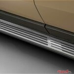 オフロード感を意識したグレード「オーバートレイル+」の専用装備もある。それがサイドステップも兼ねたメタルプレート。こちらはステンレスの金属表現が上質さ、洗練さを生むと同時に、足をかける部分の黒いラインが、機能とデザイン双方の効果を得ている。