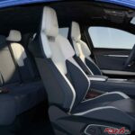 内装はルノーメガーヌE-テックと共通する基本設計ながら、アルピーヌ独自のスポーティ演出が満載。ブルーナッパレザー巻きのステアリングには、赤と青のボタンが配置され、ブースト・ローンチコントロール・回生ブレーキ切替を行えるF1スタイルの操作系を採用。
