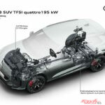 もっともパワフルな仕様は2.0Lターボ×4WDの「Q3 TFSI quattro」で、最高出力265ps、最大トルク400Nmを発揮。そしてハイライトはPHEV(Q3 SUV e-hybrid 200kW)モデル。19.7kWhのバッテリーで航続距離119km(WLTP)を実現し、急速充電は50kWまで対応。都市部ではEV走行、長距離では内燃機との併用と、万能性が光る。