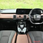 2WDモデルに乗り込む。インテリアもスズキテイストで、アンビエントライトも装備されるなど非常に洗練された印象。フロンクスのインテリアからひとつ先に進んだデザインで、EVらしさも感じるが「とっつきにくさ」はない。