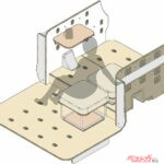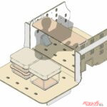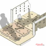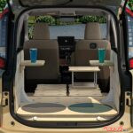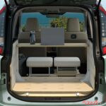 最大の特徴は、後席&ラゲッジを大胆に架装して生まれた“持ち運べる部屋”。5種類の家具モジュール(ベース、ベースラージ、クッション、サイドテーブル、ワークテーブル)を自由に組み合わせれば、キャンプ仕様にもワーケーション仕様にも早変わり。