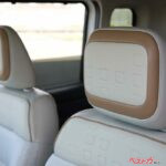 新型ルークスの“かくまる四角”は、外装だけにとどまらない。ヘッドレストやスピードメーターといった内装パーツにも採用されている。