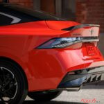 ボディサイドに目を移すと、ファストバック風のシルエットとともに、アーチ状のクロームメッキ仕上げのルーフラインで個性を主張する。Cピラーの造形はどことなくフェアレディZを感じさせるものだ。リア回りは一文字ランプとして、高級感を演出している。