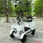 足を大きく上げずにまたがれるフラットフロア構造とサイドステップの採用で、足腰に負担をかけず安定した乗降が可能。前後カゴと足元スペースの収納力も抜群で、買い物や通院にもぴったり。さらに広い座面と背もたれ・腰部サポートが快適性を高め、11インチタイヤと車両重量50kgながら150kgまでの耐荷重という頼もしさも備える。