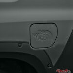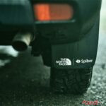給油口にはインクリメンタルフォーミングで刻まれた「THE NORTH FACE」のロゴが輝き、タイヤ&ホイールはオールブラックで統一。マッドガードにはTHE NORTH FACEとSpiberのロゴを配置し、後ろ姿まで抜かりなし。