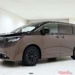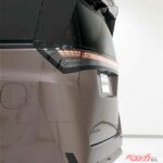 さらにリアには大型スポイラーを装着。この“デカいリアスポ”がもたらす存在感は圧巻で、後ろ姿だけでも新型エルグランドと分かるほど。ボディカラーには新開発の「FUJI DAWN -フジドーン-」を採用。富士山の夜明けをモチーフにした深みのある輝きが、まるで静寂と威厳を同時に表現しているようだ。