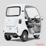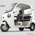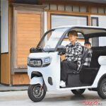 その構造だが、運転席に一人、後席に二人が乗れる3人乗りの電動トライク(3輪車)。全長2360mm、全幅1080mmとコンパクトだから、普通車1台の駐車スペースに2台以上停められるのではなかろうか。動力は電動で、今後はバッテリーの種類や容量が選べるようだ。