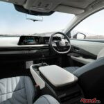 ボディカラーにはオーロラをイメージした新色「翡翠乃光(ヒスイノヒカリ)」が登場。プラズマグリーンとミッドナイトブラックの2トーンが、EVらしい清らかさと未来感を演出する。また、インテリアにも「ホワイト/グリーン」の新色が追加され、上質なレザーとライトグレーのコントラストがモダンな空間を作り上げている。