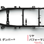 車両価格は551万8700円と11万円アップとなったが、納得の内容。そう、ヤマハ製のパフォーマンスダンパーが前後に装備されたのだ。じつはこれラリーマシンはすでに装着しており、そのノウハウを生かして今回の一部改良に併せて標準装備化されたワケ。