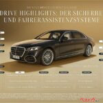 運転支援システムMB.DRIVEは、10台のカメラ、5基のレーダー、12個の超音波センサーを活用し、高速道路から都市部まで幅広く対応する。MB.DRIVE ASSIST PROでは、条件が整えば信号や交差点を含むポイント・トゥ・ポイントの支援も可能とされ(いわゆるNOA=ナビゲーション・オン・オートパイロット)、ドライバーの負担を大きく軽減する。