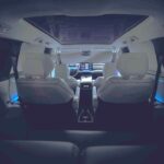 この映像の公開から1週間後、今回のティザー動画がリリースされたわけだが、映っているのは車内で、おそらく3列シートの最後列と思われる場所から前方を映している。ダッシュボードには巨大なセンターディスプレイが鎮座し、2列目には立派なアームレストが備わる。幅のあるセンターコンソールからも、全幅の広さがうかがわれる。