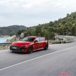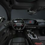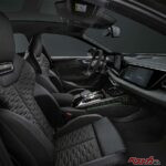 フロントにはハニカムグリルのシングルフレーム、リアには縦フィン付きディフューザーとマットオーバル形状のRSスポーツエキゾーストを装備。ダーク化されたマトリクスLEDヘッドライトやチェッカーフラッグ風のデジタルシグネチャーも与えられ、ひと目でRSとわかる迫力を放つ。