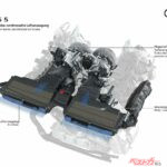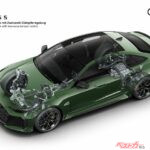 新型RS5最大のトピックが「quattro with Dynamic Torque Control」である。リアトランスアクスルにダイナミックトルクコントロールを備えた量産車初の電気機械式トルクベクタリングを採用。わずか15ミリ秒で最大2000Nmのトルク差を左右後輪に与える制御能力は驚異的だ。