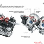 アウディスポーツ初の高性能プラグインハイブリッドとして誕生した新型RS5は、システム最高出力470kW(639ps)、最大トルク825Nmを誇るモンスター。2.9L V6ツインターボは375kW(510ps)を発生し、これに130kW(177ps)の電気モーターを組み合わせる構成だ。0-100km/h加速は3.6秒という俊足ぶりである。