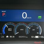 内装は水平基調のインパネと、ホールド性に優れた専用スポーツシートを備え、専用液晶メーターは7インチで「バッテリー温度計」「疑似タコメーター」「出力計」から構成される3眼スタイル。疑似タコメーターは仮想のエンジン回転数を表示、仮想有段シフト制御と連動することで、視覚的な高揚感をもたらすのを狙っている。「走る」雰囲気にさせてくれる演出も十分といったところだ。