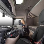 いっぽう、XFと骨格を共有しながら、新たに設定されたXGとXG+はダフ初のプレミアムセグメントモデル。フロア高を高めてトンネル段差を50mmに縮小。さらにキャブ後部を330mm延長してキャブ容積も拡大。キャブ前後長は実に2690mmにおよび、室内の広さはクラストップだ。