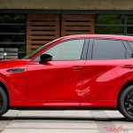 CX-60とCX-5の違いは、ボディを横方向から見ると分かりやすい。CX-5はエンジンを横向きに搭載する前輪駆動だから、フロントのAピラーと前輪の間隔が近い。