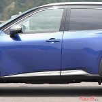 e-4ORCE採用第1号車となったアリアは、都会派クロスオーバーSUVというキャラクターもあり、(e-4ORCEの役割は)雪道や濡れた路面での性能向上、オンロードのハンドリング性能向上といったところだったが、本来e-4ORCEは、4輪に理想的な駆動力配分を行うことで、オンロードからオフロードまで、オールラウンドで走破性を高めることが狙いであり、今作のエクストレイルにこそドンピシャ当てはまる技術だ、と、日産第二製品開発部第三プロジェクト統括グループ車両開発主管の中村将一 チーフビークルエンジニア(CVE)氏はいう。