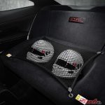 キャビンでは、シートをフロント2座のみとし、リアシートは完全に撤去。さらに軽量なだけでなく、サーキット走行でのドライバーをサポートするCFRP製フルバケットシートを装着し、防音材の削減や超軽量遮音材の変更まで行っている。