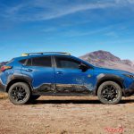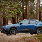 さらにクロストレックウィルダネスの最低地上高は、標準モデルからプラス約15mmとなる約236mmを確保している。フロント&リアショックアブソーバーの最適なチューニングに加え、不安定な路面でも高いグリップ力を発揮するオールテレーンタイヤを装備することでタイヤの接地性を高め、最低地上高を拡大しながらも安定した走行を実現したという。