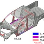 ボディは「ダブルキャブ」「シングルキャブ」「クラブキャブ(1列シートだがフロントシートの後ろに荷室スペースを設けた仕様)」の3タイプを用意。詳細なサイズは現時点では公表されていないが、ボディは先代型より一回り大きくなり、これでライバル(たとえばトヨタハイラックス)と互角以上の勝負を繰り広げられるようになる。