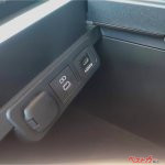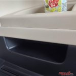 まずは左右両席の足元。前席下のほとんど床面の高さにスライドトレイ式の収納がある。仮にオーナーになっても気付かず見落としてしまいそうな収納だ。