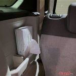 リアシート最大のトピックは左右の空間が広がったことだ。肩から肘にかけて内張部分を削り、先代に比べて左右幅を55mm拡大したという。ここにはティッシュボックスも縦に置けるのだが、なによりも後席乗員の肩部分の窮屈さを解消したことが大きいといえる。