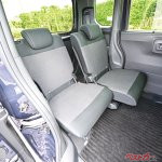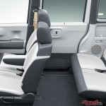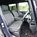 そのぶんインパネの質感は凝ってて基本ハード樹脂だが一部シボはオシャレ壁紙のようだし、助手席前の棚もコルク風素材。シートも一見造形は変わらないが、よりシンプルなファブリック配置になりオシャレ女子ウケ間違いナシ。