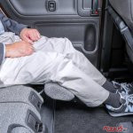 続いて、本命のオットマンモード。シート横のボタンを押してシートフラップを伸ばせばオットマンモードになる。ただし、ノア&ヴォクシーのオットマンと比べると、当然といえば当然だが、シートフラップが短く小さいので、「快適、快適」というほどのものではなかった。まあ、期待値が高かったせいもあるが……。