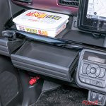 またコロナ禍もあり、ファーストフードのドライブスルー利用客が増えた。そこで新型の助手席前タナはペヤングの超大盛り焼きそばがすっぽり載るサイズに。縦横比にして17×23cmだからかなりデカい。