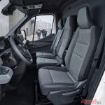 搭載されるパワートレインはディーゼルターボと100%EVの2種類。87kW仕様の航続距離は460km、40kWh仕様のショートバージョンでは約200km走行可能。シャシーの写真を見ていただければわかるが、整然と床に配置されたバッテリーを見ることができる。