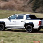 走破性もトレッドも同じ。強いて言えばGSRの樹脂性オーバーフェンダーが極悪路でのボディダメージを減らしてくれるかも。GSRは荷台上のスタイリングバーのデザインがいい。トライトンのリアビューのよさを爆上げしてくれている。